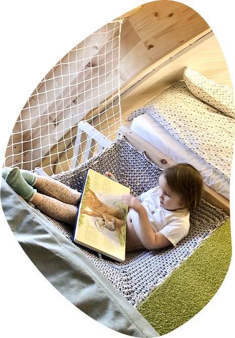 У нас разновозрастные группы вместо искусственного разделения детей по возрасту. У каждого ребенка есть свое личное пространство – домик-кроватка. Мы оцениваем успехи каждого ребенка только относительно самого себя, обеспечивая действительно индивидуальный подход.
